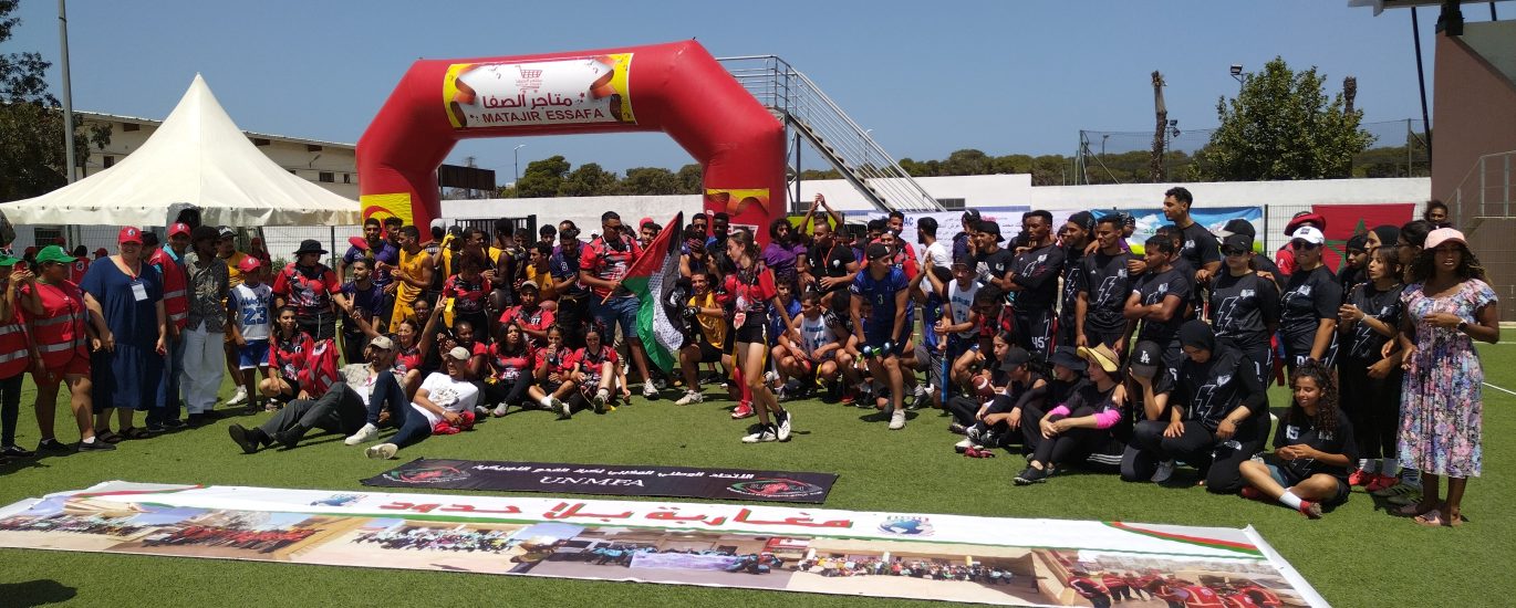 نظمت جمعية مغاربة بلا حدود بشراكة مع الاتحاد الوطني لكرة القدم الأمريكية نشاطا رياضيا متميزا بمناسـبة عيد العرش المجيد تجلى في تنظيم دوري في كرة القدم الأمريكية بالملعب البلدي لتمارة ، بمشاركة تماني فرق وطنية، و ميز هذا الحفل البهيج نقل لمبارة المنتخب المغربي و نظيره العراقي، كما ساهمت فرقة زاكورة للثرات الشعبي بوصلات غنائية بين الشوطين و في الاخير ثم تتويج الفرق الفائزة بالكؤوس و الميداليات و شواهد المشاركة في الدوري . حفظكم االله يا مولاي بما حفظ به الذكر الحكيم و أبقاكم ذخرا و ملاذا لهذه الأمة و منارا يهتدي به و متعكم بدوام الصحة و طول العمر و أقر عينكم بولي العهد صاحب السمو الملكي الأمير الجليل مولاي الحسن و شد أزر جلالتكم بشقيقكم صاحب السمو الملكي الأمير مولاي رشيد و بكافة أفراد الأسرة الملكية الشريفة ، إنه سميع مجيب